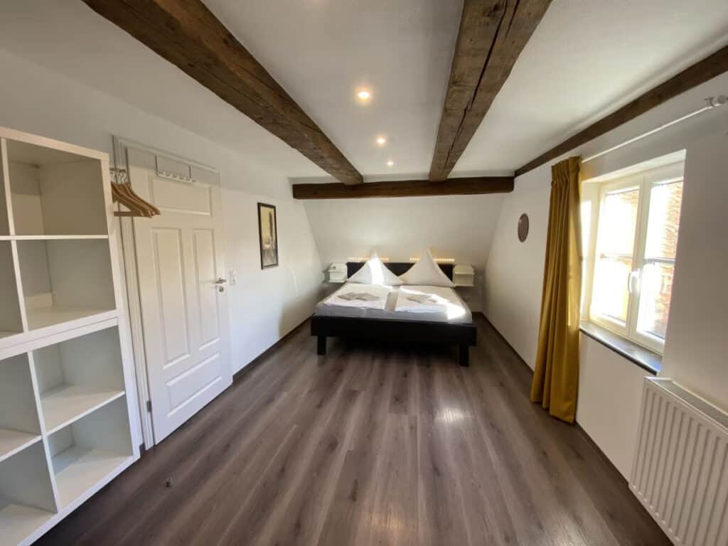 Die Wohnfläche von 160 m² ist auf zwei Etagen verteilt. Das Ferienhaus bietet einen großen Garten mit einen überdachten Freisitz sowie eine Grillmöglichkeit und einen Platz für Ihre Fahrräder. Sie wohnen in einem historischen Gebäude mit einem Stück Ellinger Geschichte aus dem 17. Jahrhundert. Das ehemalige herrschaftliche "Scharfrichterhaus". Für unsere kleinen Gäste haben wir eine Tischtennisplatte, Trampolin, Spielturm mit Rutsche, Sandkasten Schaukel und viel zum Klettern.